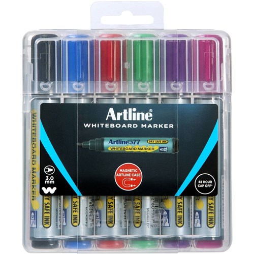 Artline 577 Whiteboard Markers Bullet 3mm Assorted Colours Hard Case Pack Of 6