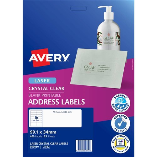 Avery Crystal Clear Laser Address Labels 99.1x34mm 16UP 160 Labels 10 Sheets