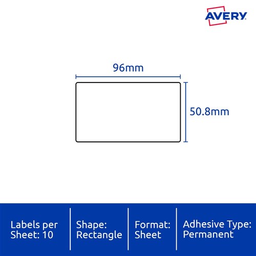 Size: 96x50.8mm 200 labels, 20 sheets. 10 labels per sheet (10UP).