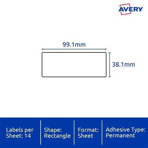 Size: 99.1x38.1mm 350 labels, 25 sheets. 14 labels per sheet (14UP).