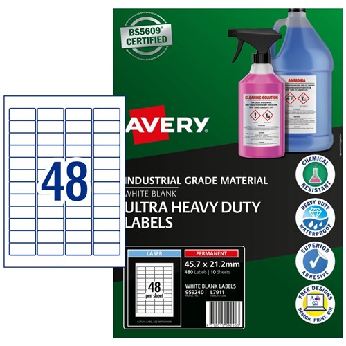 Avery Identification Laser Ultra Resistant White L7912 63.5x33.9mm 24UP 240 Labels
