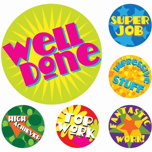 Avery Merit Stickers Caption 1 Round 22mm 5 Designs Assorted Colours 300 Stickers