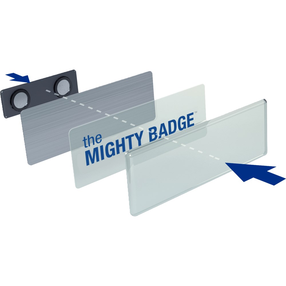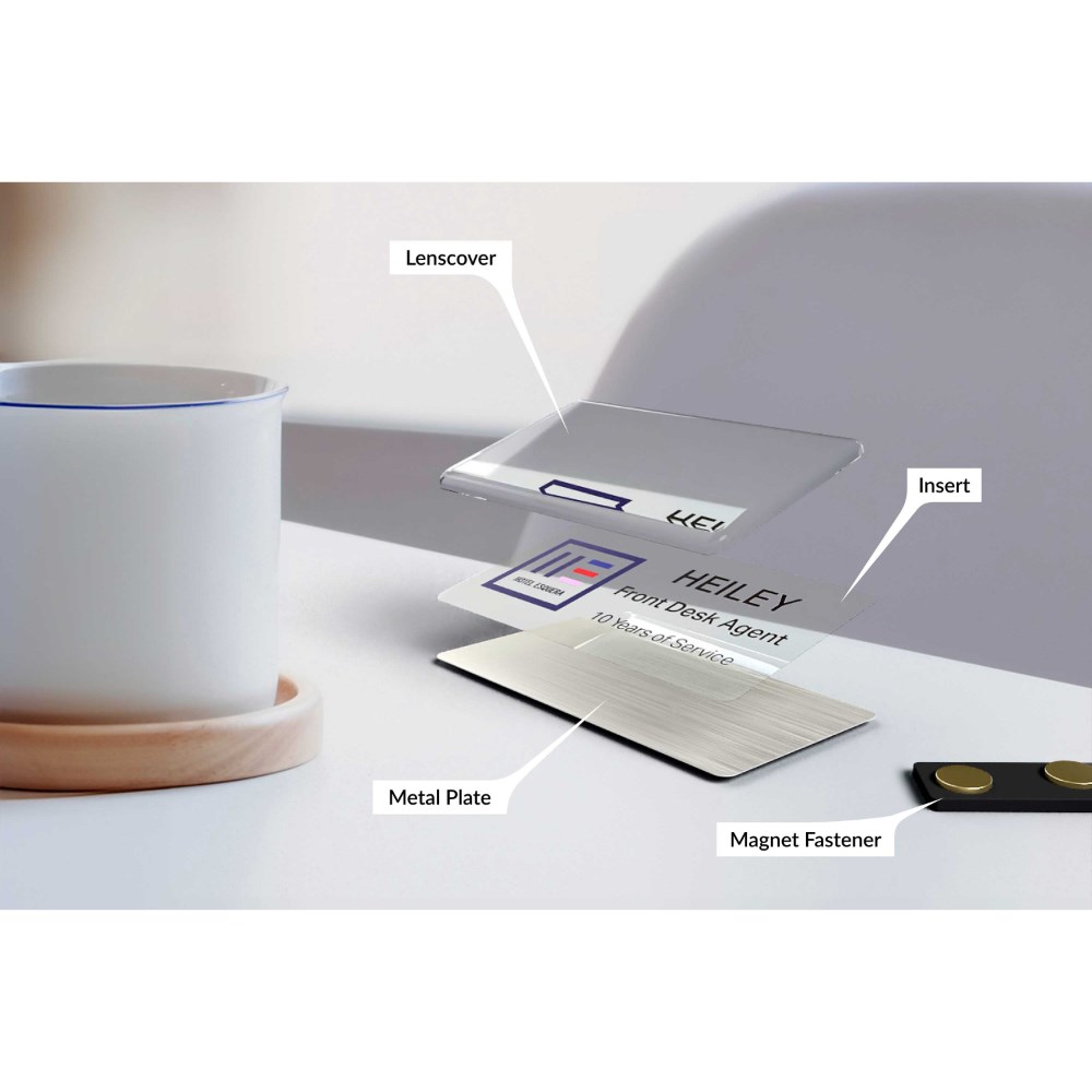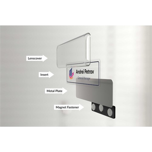 Name badges can be used and reused for every occasion by simply replacing inserts.