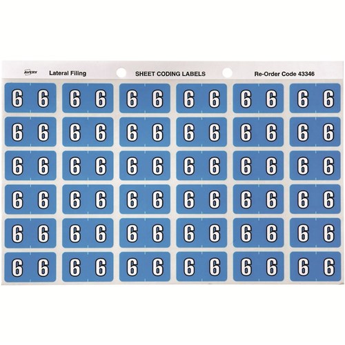 Avery Numeric Coding Label 6 Side Tab 25x38mm Blue Pack Of 180