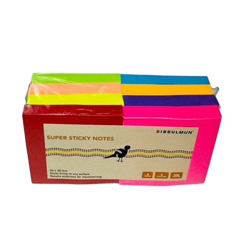 Bibbulmun Super Sticky Notes 50 x 50mm Assorted Pack Of 8