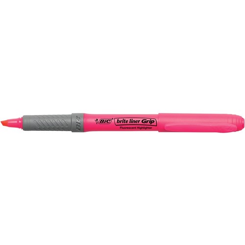 Bic Brite Liner Grip Highlighters Chisel 1.6-3.3mm Pink Pack Of 12