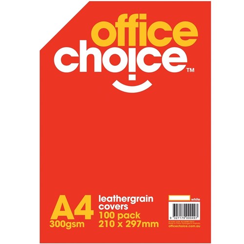 BINDING COVER A4 LEATHERGRAIN WHITE PK100 OFFICE CHOICE ACO-49500A