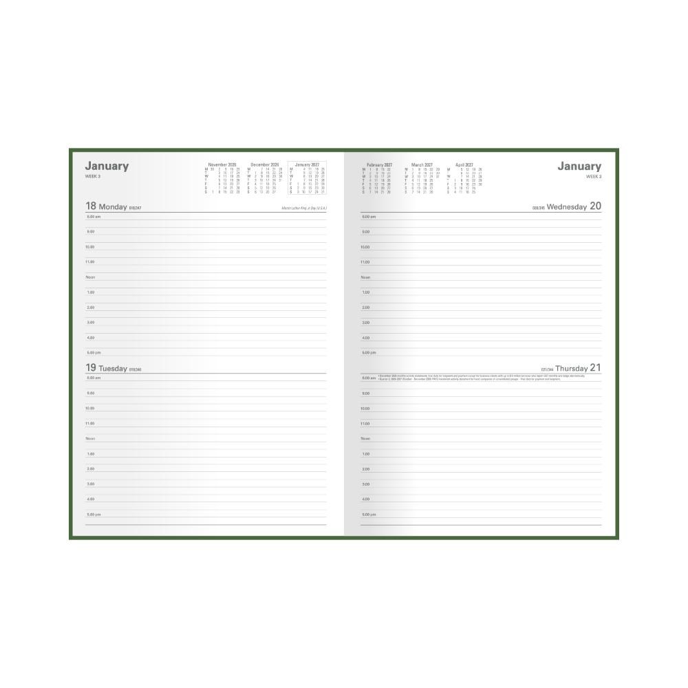 Smartly bound in durable covers with a ribbon marker and contains pages of useful information.