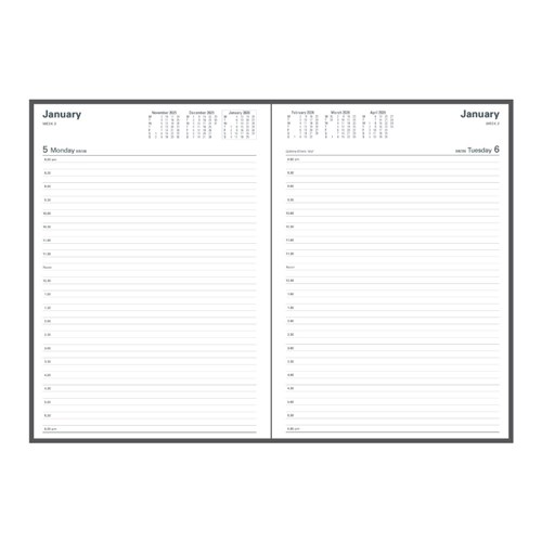 Smartly bound in durable covers with a ribbon marker and contains pages of useful information.
