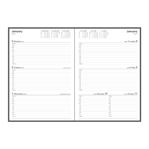 Smartly bound in durable covers with a ribbon marker and contains pages of useful information.
