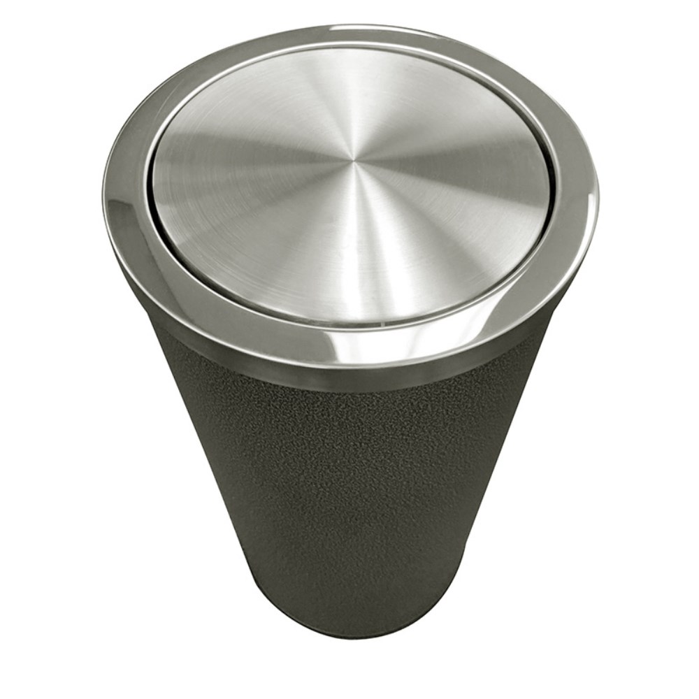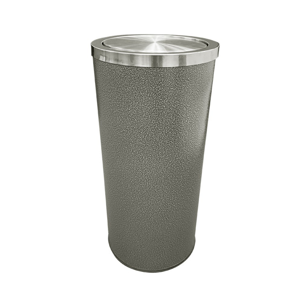 Powder coated body with 201 grade stainless steel swing lid.