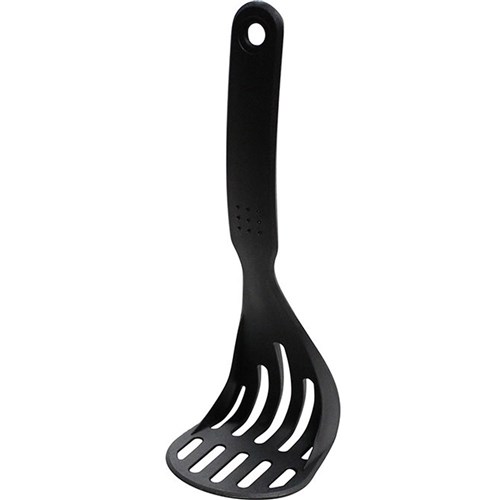Smooth form, in a resilient plastic, results in no damage to non-stick cookware.