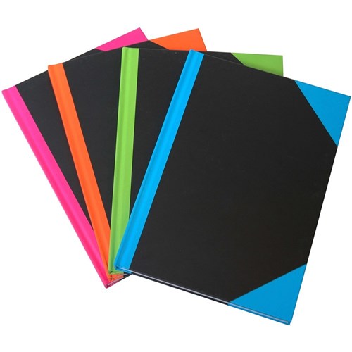 Hardcover casebound notebooks with bright contrast colour covers.