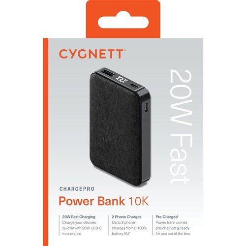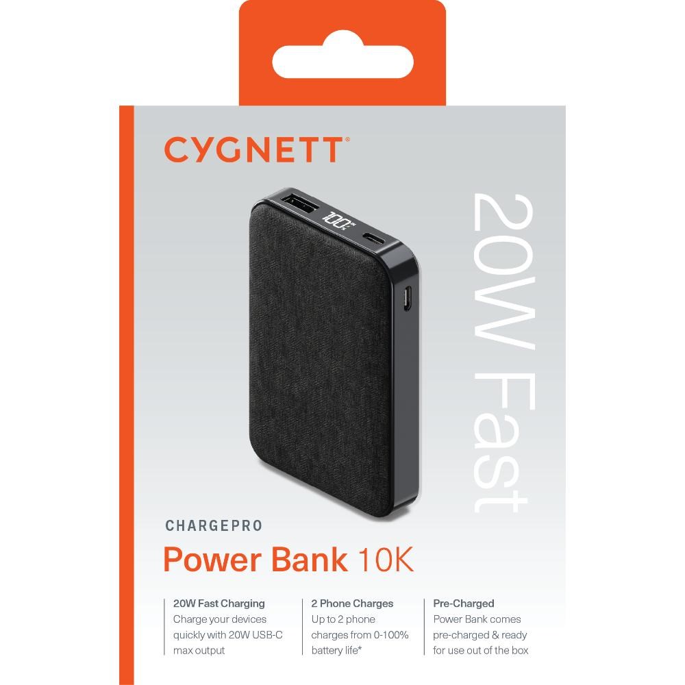 Cygnett ChargePro 20W 10K mAh Power Bank USB-A And USB-C 3 Ports Graphite
