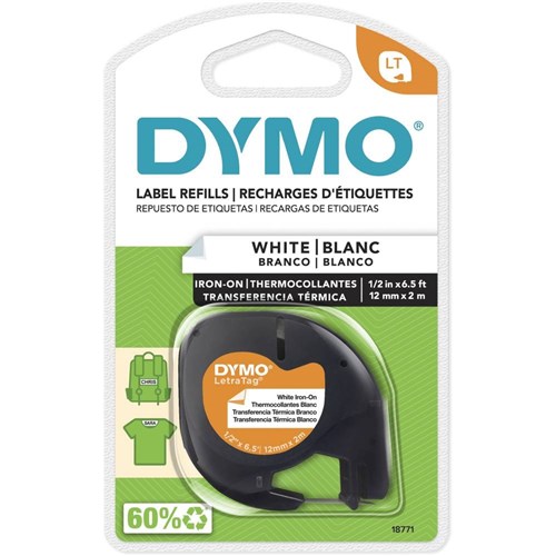 Dymo LetraTag Labelling Tape 12mm x 2m Iron-On Fabric Black On White