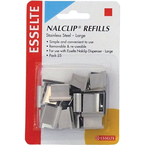 Esselte Nalclip Refills Large Stainless Steel 60 Sheet Capacity Pack Of 25 Silver