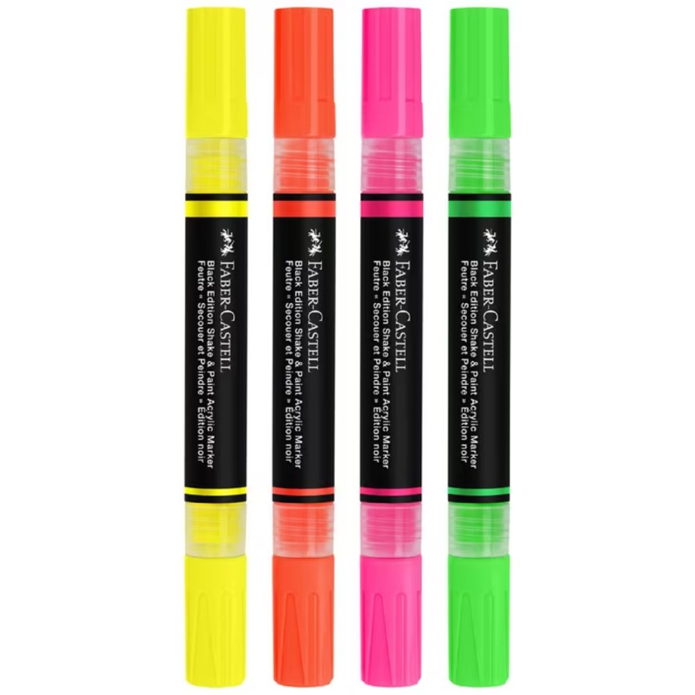 Faber-Castell Black Edition Shake & Paint Markers Bullet Neon Assorted Set Of 4