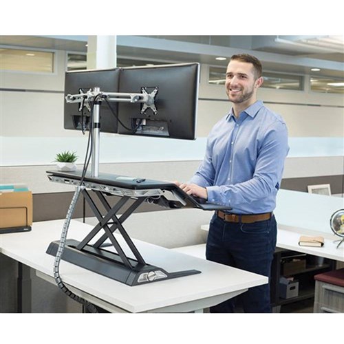 Monitors stays in place when you lift or lower your ®Lotus Sit-Stand Workstation.