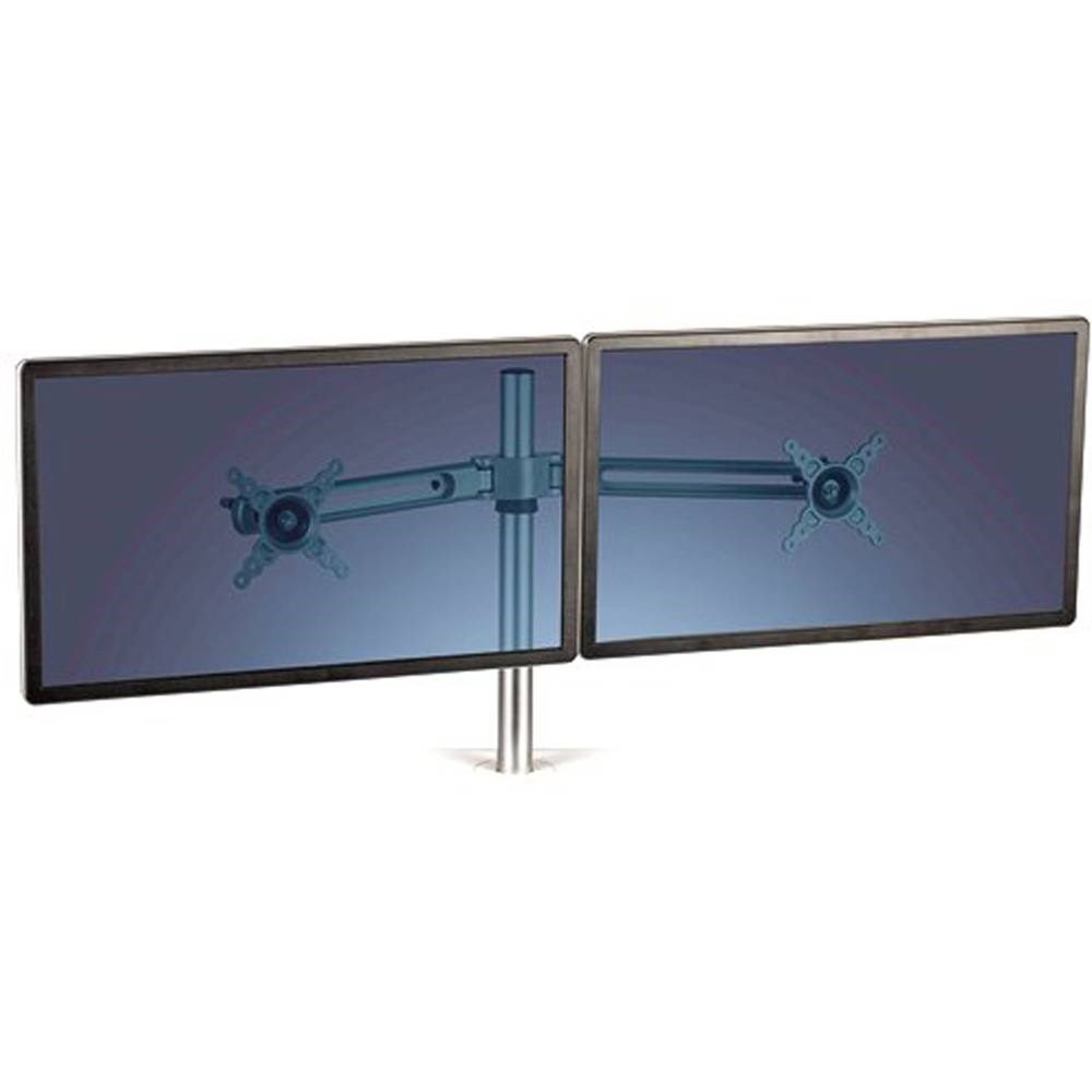 Raises monitors to an optimal viewing height to prevent neck strain and free up valuable workspace.