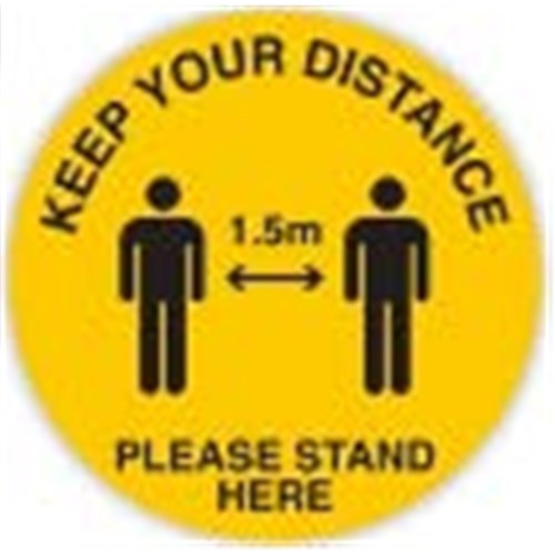 FLOOR DECAL 300MM SELF ADHESIVE YELLOW DISTANCE KEEP YOUR DISTANCE DOT