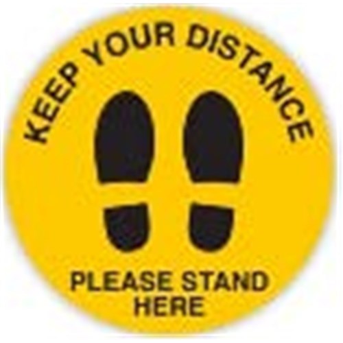 FLOOR DECAL 300MM SELF ADHESIVE YELLOW FEET DOT