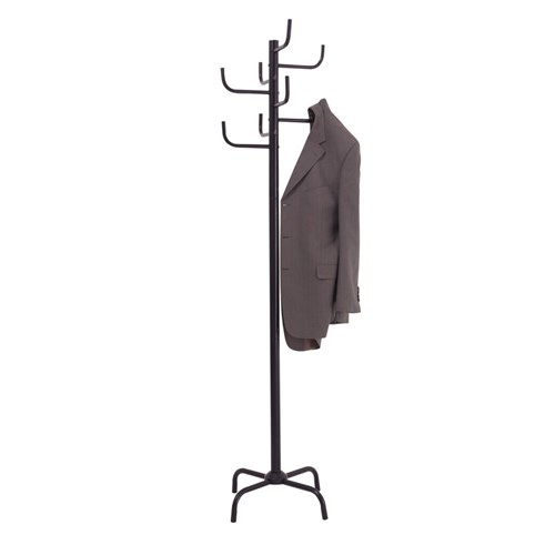Alba Stily Coat Rack 8 Hook Silver Metal Stand With Wooden Hook Knobs