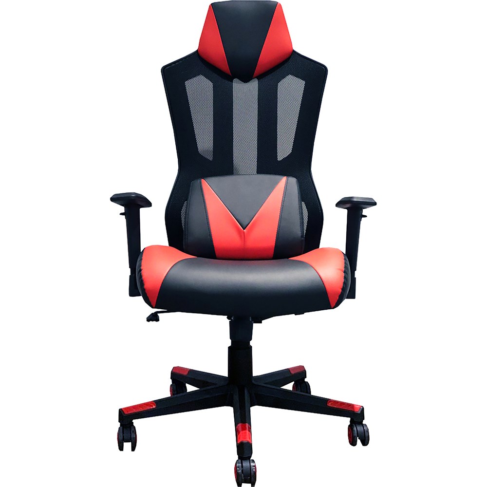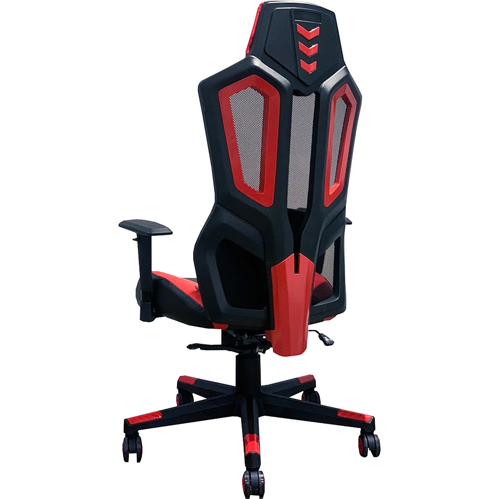 Loose Back Cussion for Lumbar Support and Adjustable Arm Rests with Rectangular Arm Pads.