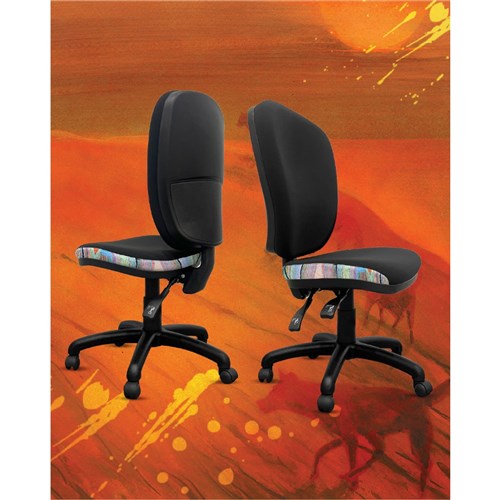 A unique commercial fabrics designed by Liddy Napanangka Walker (Indigenous Artist) combined with K2 Black Fabric to upholster the chair.