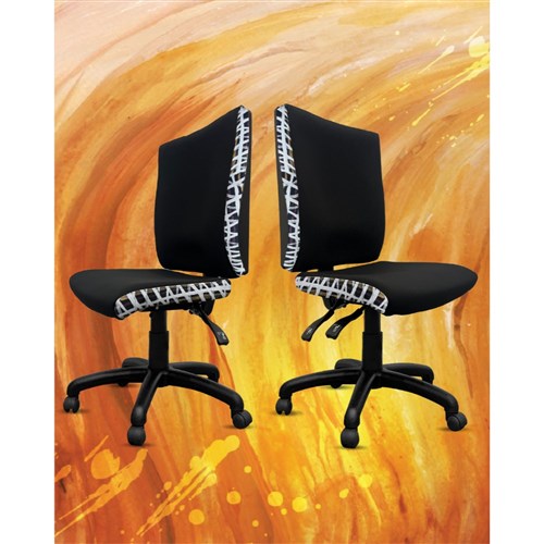A unique commercial fabrics designed by Paulina Puruntatameri (Indigenous Artist) combined with K2 Black Fabric to upholster the chair.