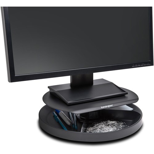 Patented 360-degree spinning carousel organizes common desktop accessories.