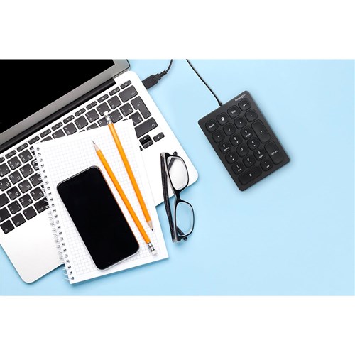 21-Key number pad with four shortcut keys is a smart addition to a laptop or keyboard that is not equipped with a number pad. Shortcut keys allow frequently used commands with the press of a button (some shortcut keys are only Windows compatible).