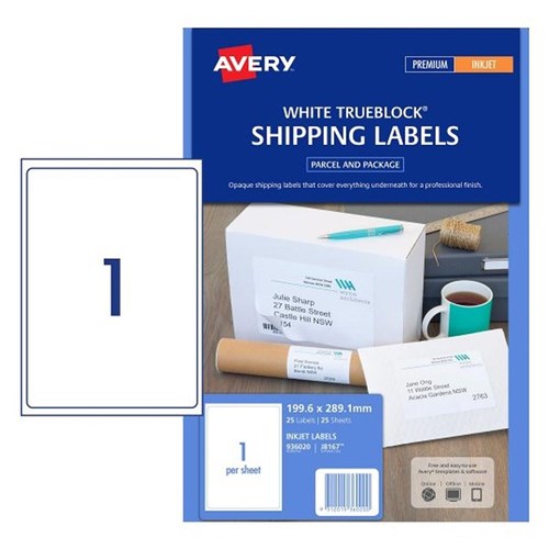 LABELS J8167-25 PKT 25 1 PER SHEET 199.6 X 289.1