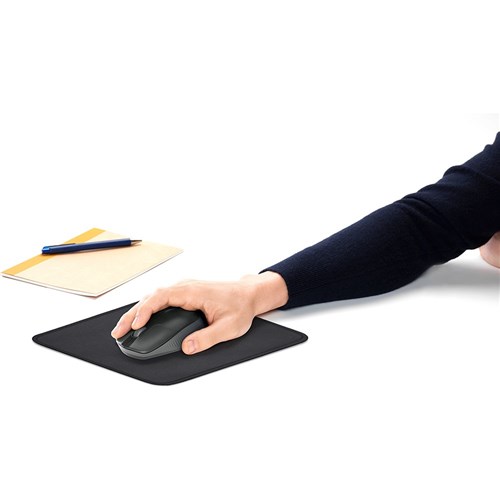 Logitech M190 is a full-size wireless mouse with a comfortable contoured design that follows the natural curve of medium to large hands.