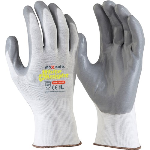 Maxisafe White Knight Nitrile Palm Gloves White And Grey Large