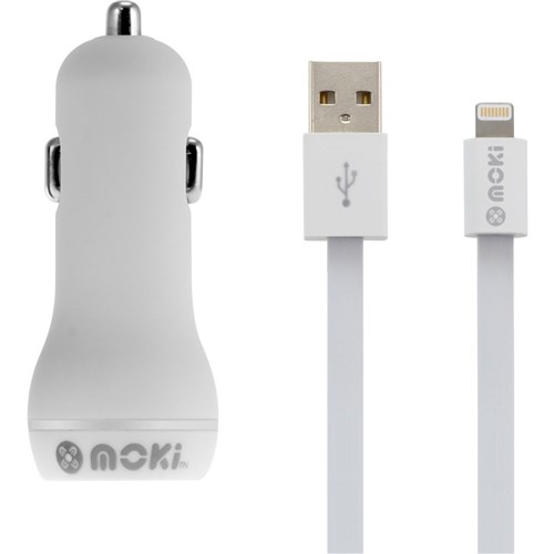 It comes equipped with 2 USB-A ports, with a total of 3.4A max output (12V/24V), and plugs straight into the auto auxiliary port.