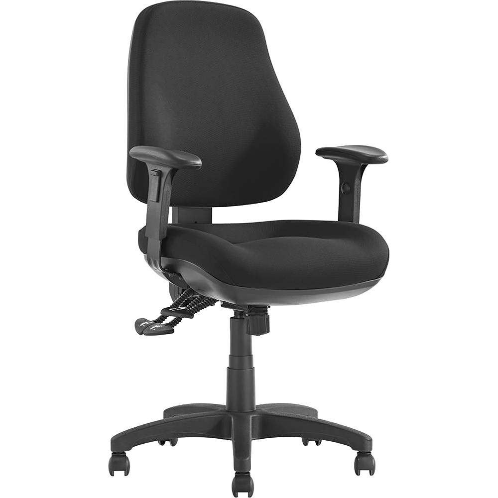 Newton High Back Task Chair 3 Lever With Arms Black Fabric