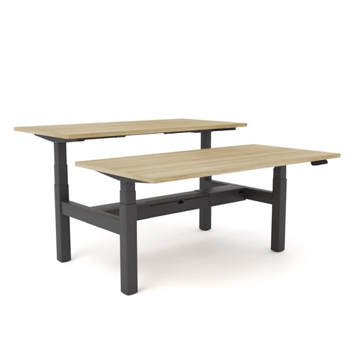 OLG Agile Motion Double Sided Desk + Cable Tray 1200Wx1500Dx 620-1270mmH Black/New Oak