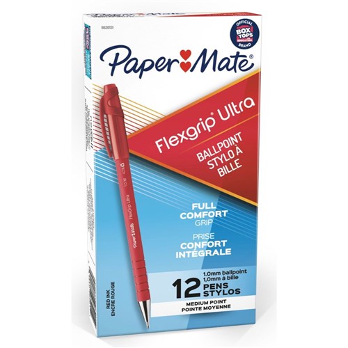 PaperMate FlexGrip Ultra Ballpoint Pens Medium 1.0mm Red Box of 12