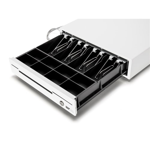 The cash drawer is a gloss white colour.
