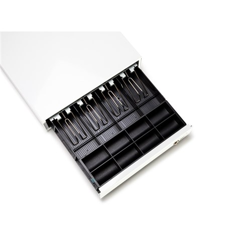 The cash drawer is a gloss white colour.