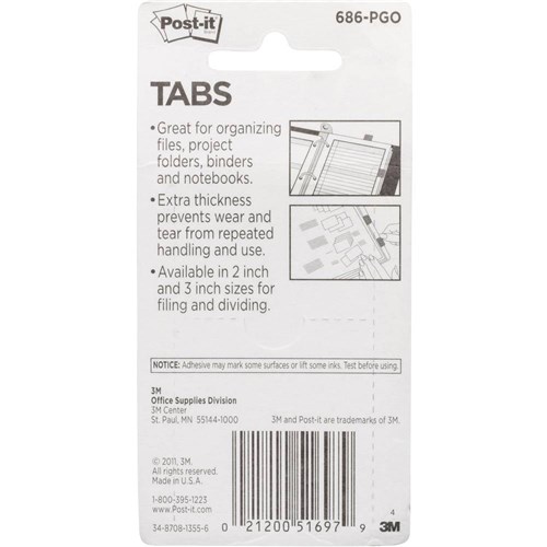 Post-It 686L-PGO Durable Tabs 25x38mm White With Pink Green Orange Pack of 66
