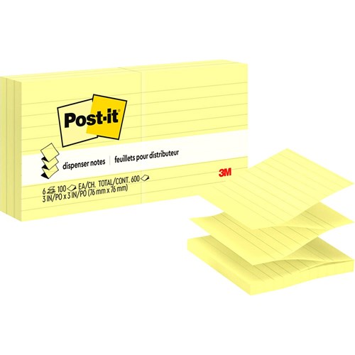 Post-It R335-YL Pop Up Notes 76x76mm Refill Lined Yellow Pack of 6