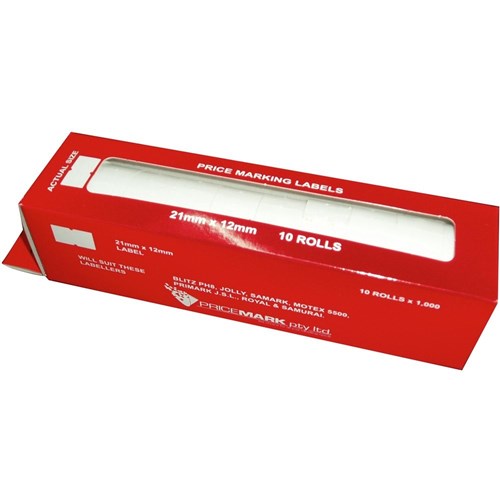 Pricing Gun Labels White Permanent 21 x 12mm Pack Of 10