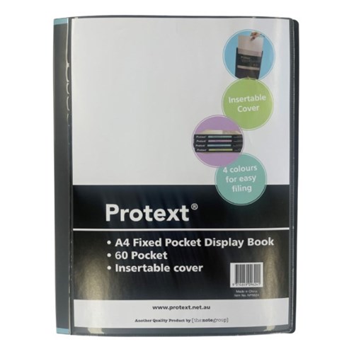 Protext Fixed Display Book A4 60 Pocket Insertable Cover And Spine Black