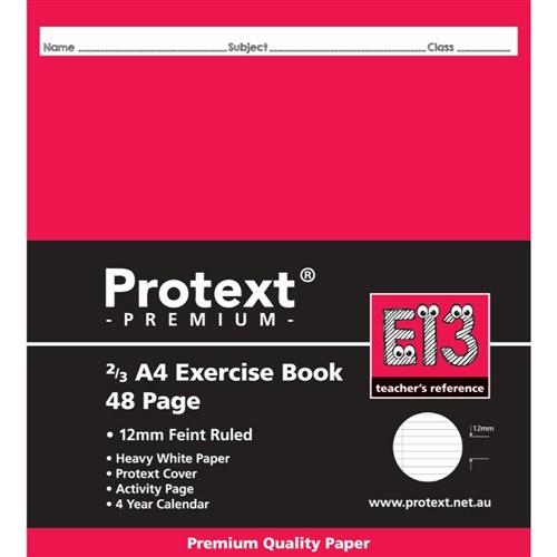 Protext Premium Exercise Book 2/3 A4 48 Page 12mm Ruled Red Margin E13