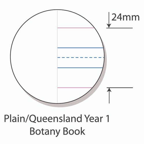 Top 1/2 plain, bottom 1/2 Qld Year 1 ruled. Red margin.