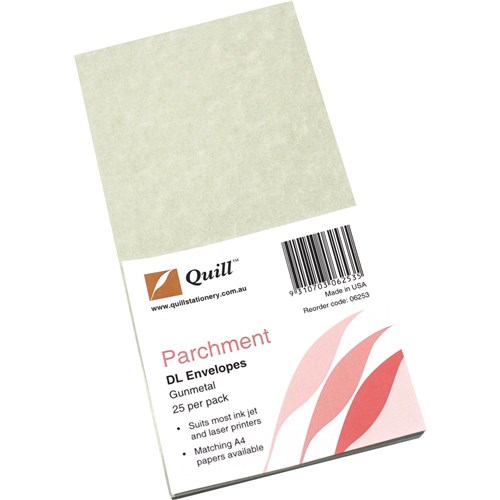 QUILL DL PARCHMENT ENVELOPES METALLIQUE SILVER PK10