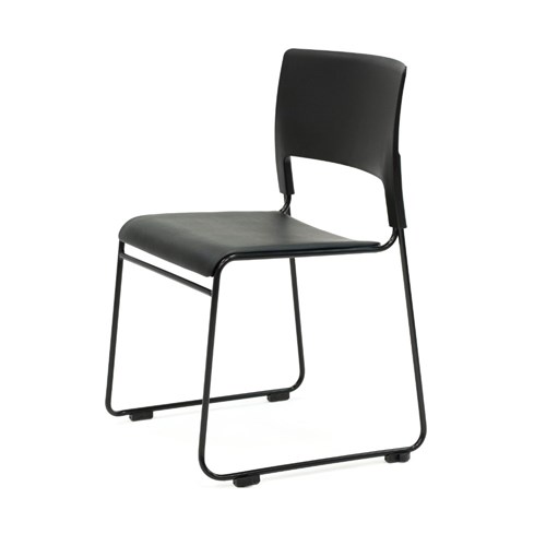 Composition: Black polypropylene seat and black rest. Seat Upholstered black vinyl. Solis steel sled base frame finished in black powder coat.
