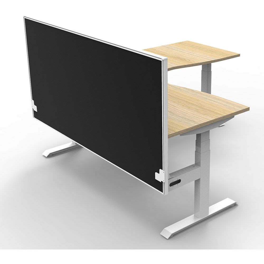 Includes pinnable privacy screen in black fabric with matching white powder coated frame. 900mm H x 30mm T.