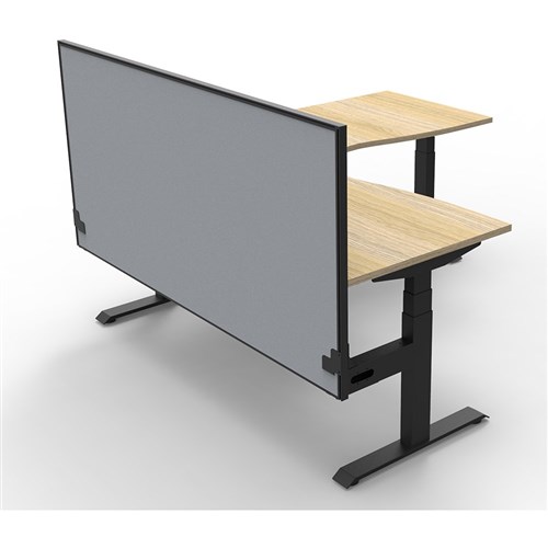Includes pinnable privacy screen in grey fabric with matching black powder coated frame. 900mm H x 30mm T.